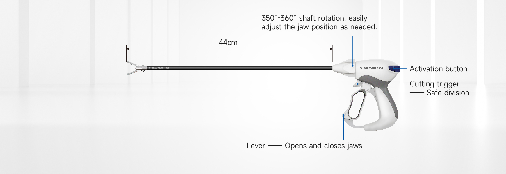 Mandíbula recta, 44 cm. Este producto es un dispositivo electroquirúrgico bipolar diseñado para usarse en procedimientos quirúrgicos laparoscópicos/mínimamente invasivos o abiertos donde se desea la ligadura y división de vasos, haces de tejido y vasos linfáticos.
